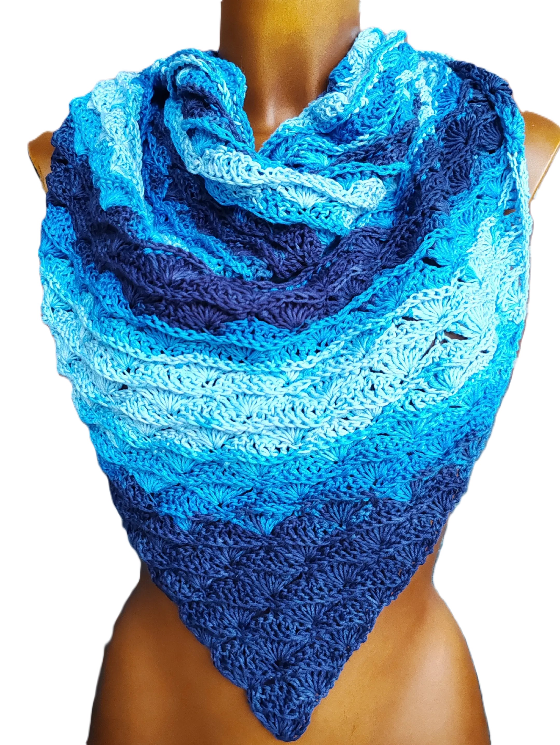100% algodón, en una gama de azules espectaculares, que vienen pisando fuerte para esta Primavera - Verano Largo aprox 1.60 cm de pico a pico y desde la parte de arriba al pico central, 70 cm aprox