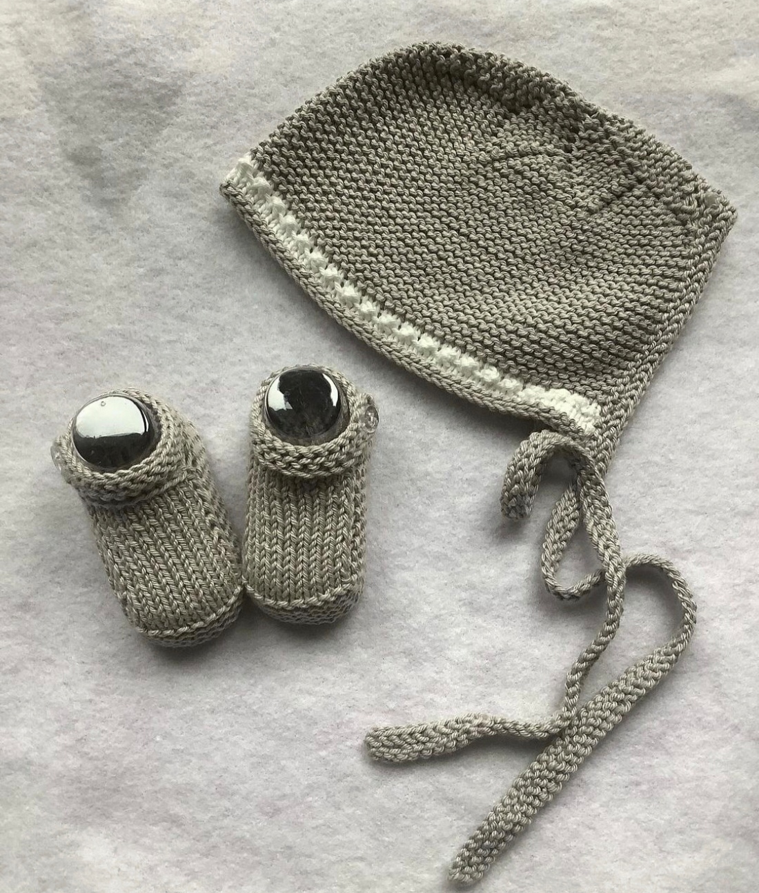 Hecho en algodón, combinando gris con detalle en blanco. Conjunto unisex en talla 3 - 6 meses