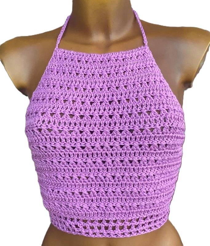 Algodón color lila, top que anuda al cuello y con lazo en la parte baja de la espalda, dejando esta al aire, ideal para esta nueva temporada. Además el lila es uno de los tonos que se traerá esta nueva temporada. Tejido 100% en algodón, súper suave. Talla única que se adapta hasta una talla L