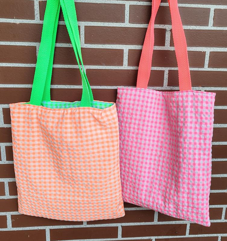 Tote bag de algodón, con vichy flúor, forradas y con asa también en algodón