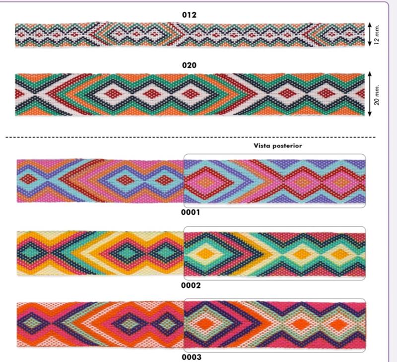 Cinta estrecha como la de la foto... Multicolor con dibujo por ambas caras, ideal para pulsetas, cuelga gafas, llaveros.... Se vende por metros, por lo que 1 cantidad, es igual a un metro, 2 serian dos metros....