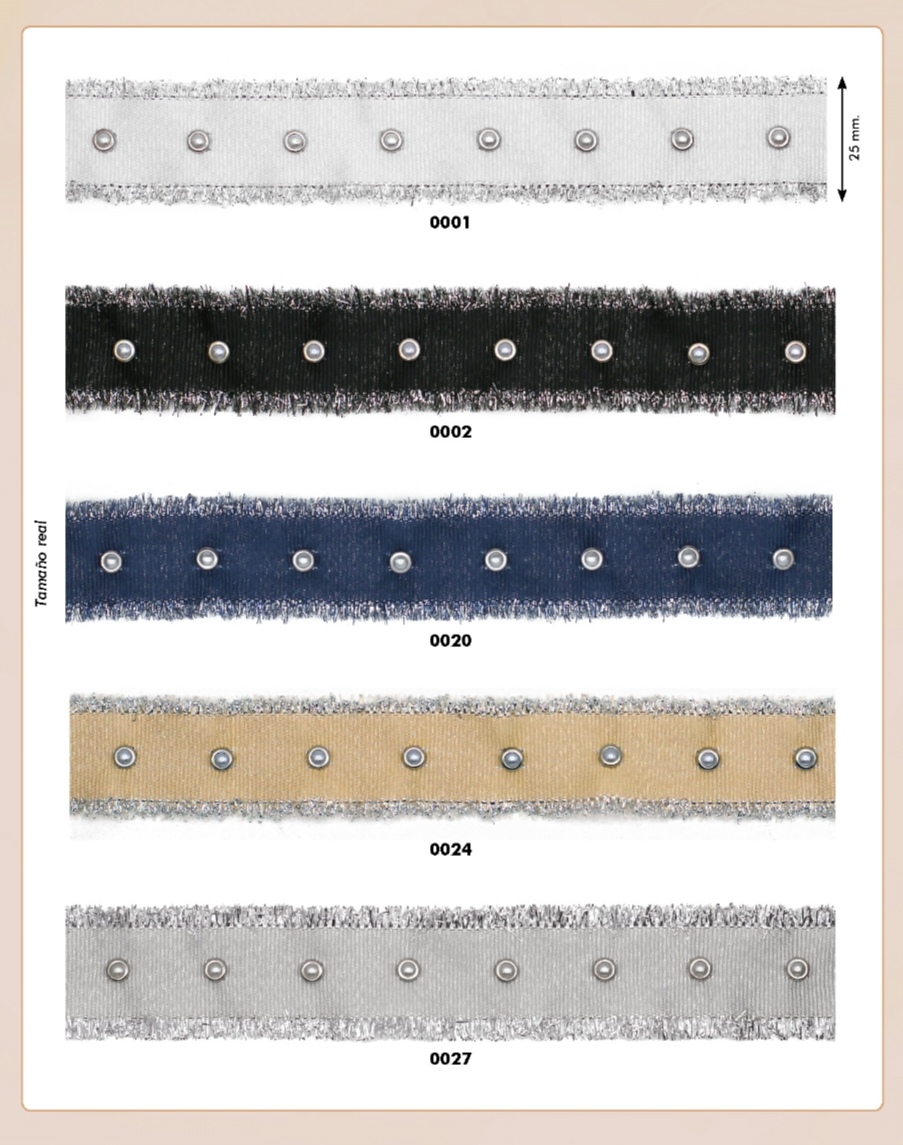 Cinta tipo grogre con tachuela de bola blanca. Terminado tipo deshilachado por los laterales Se vende por metros, por lo que 1 cantidad, es igual a un metro, 2 serian dos metros....