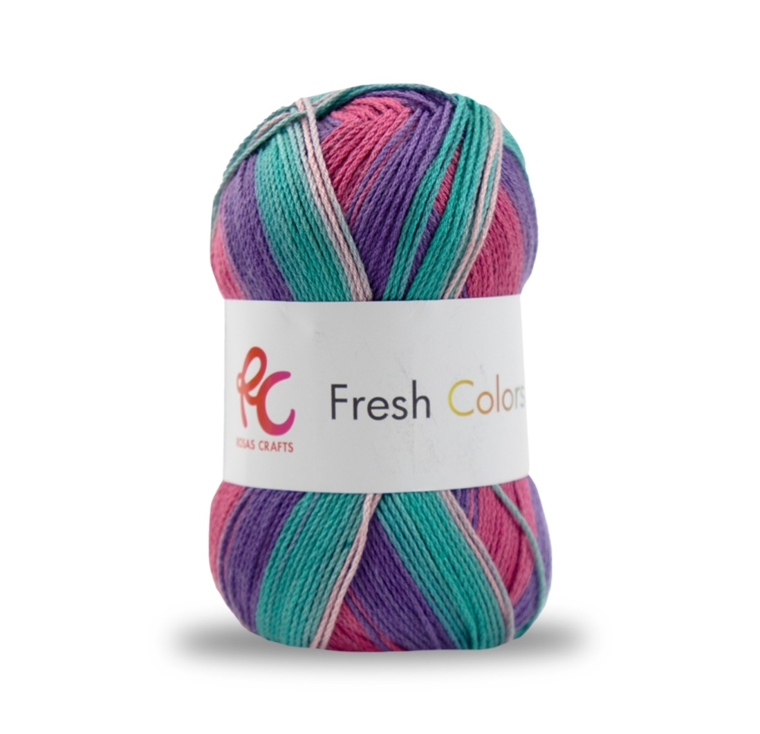 Ovillo de 100 gramos / 330 metros. Aguja de 3-4 mm Color 531: morado, turquesa, rosa... color 532:amarillo, verde, fucsia...