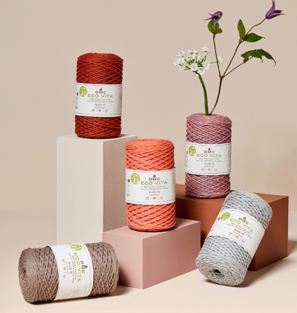 18 colores de hilo 80% algodón reciclado y 20% poliéster reciclado
