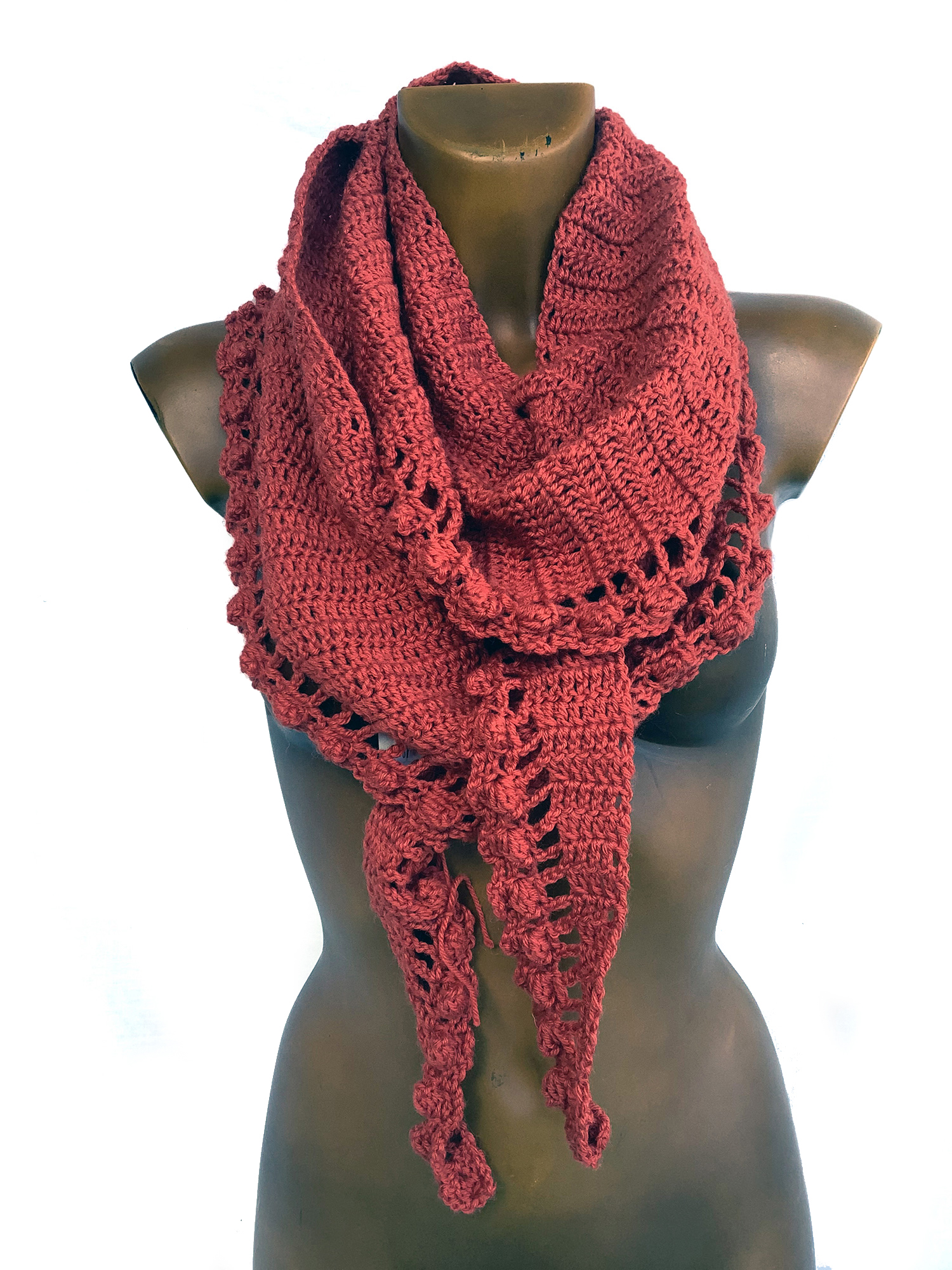 Bufanda tipo chalina, más ancha en el medio, para mejor confort en el cuello y lados en disminución