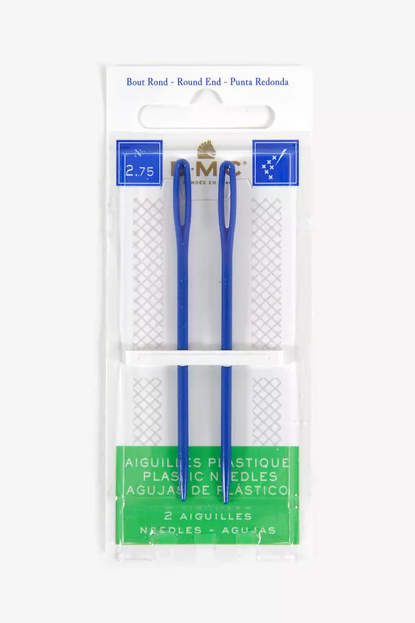 Pack de dos agujas de plástico de tamaño 2,75 con punta roma y ojo grande