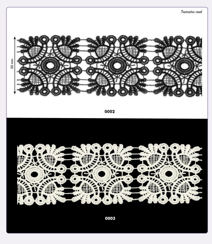 Encaje de poliester en cuadrados unidos que puedes ir cortando y usar también por separado