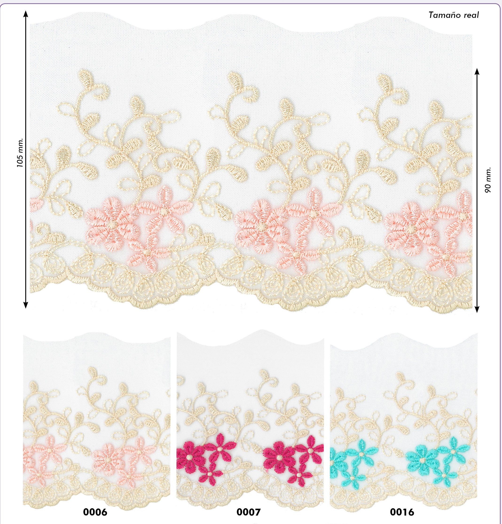 Bordado en rosa o verde agua
