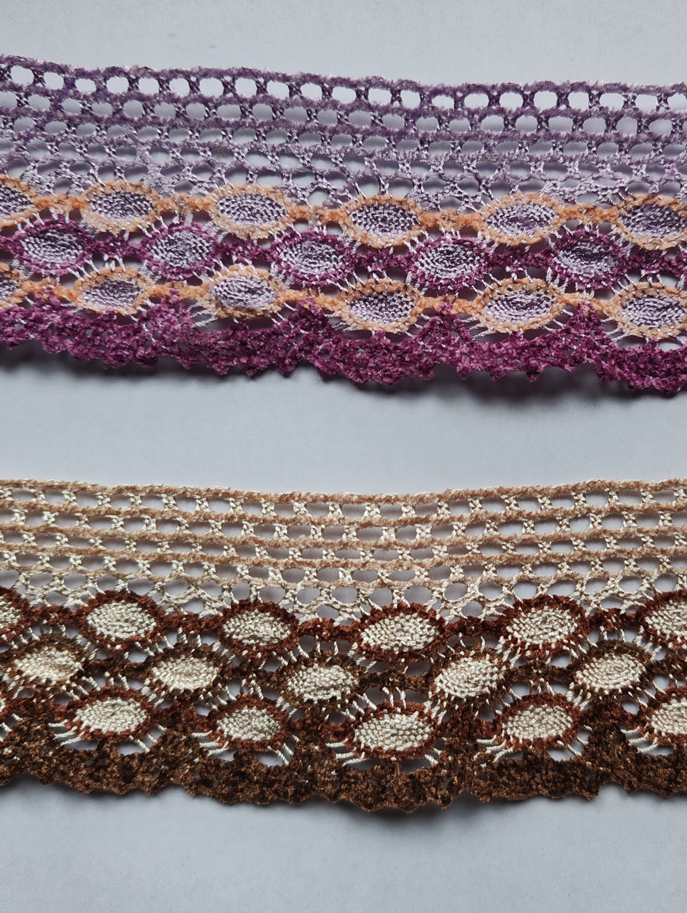 Encaje de poliester combinando tres colores